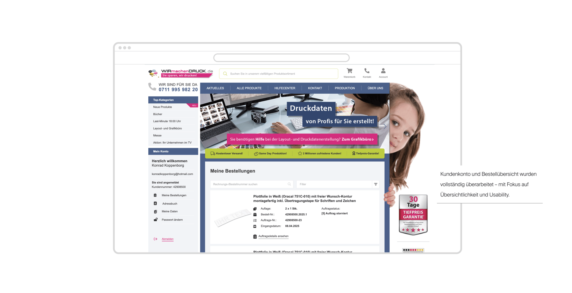 👍🏼 Kundenkonto und Bestellübersicht wurden