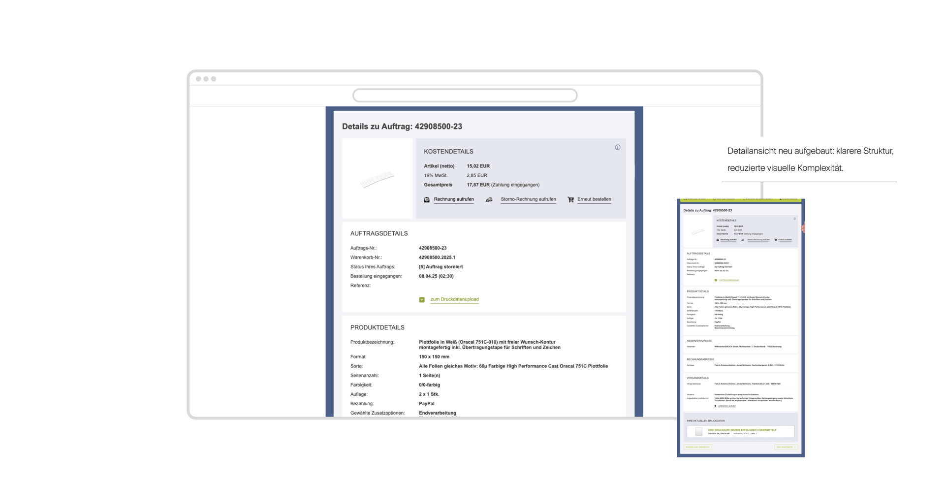 👍🏼 Detailansicht neu aufgebaut: klarere Struktur, visuell reduzierte Komplexität