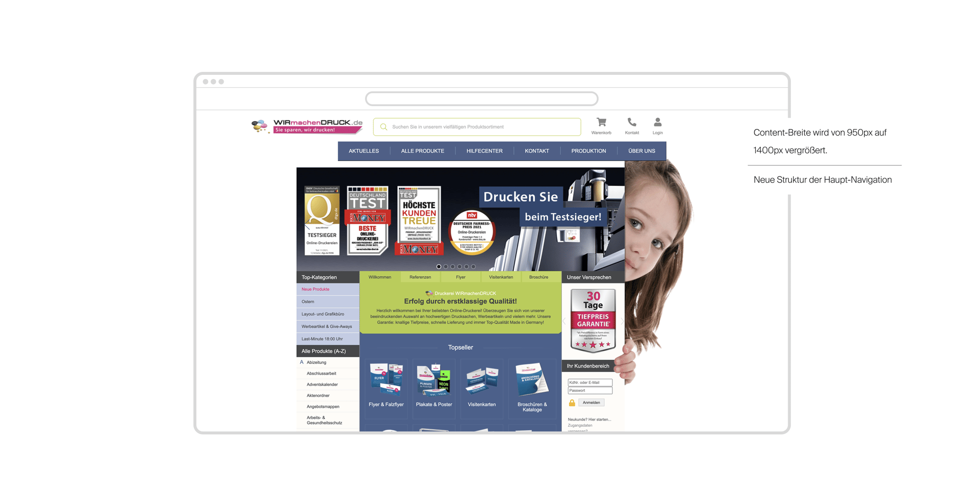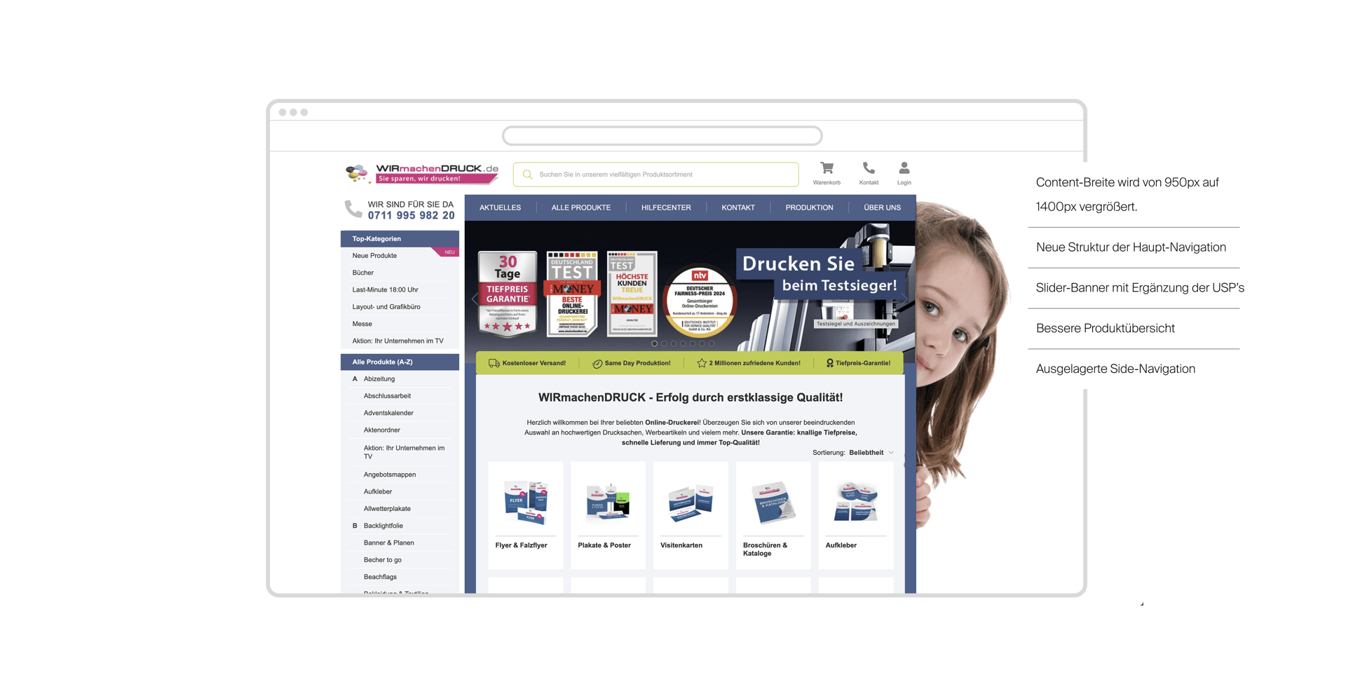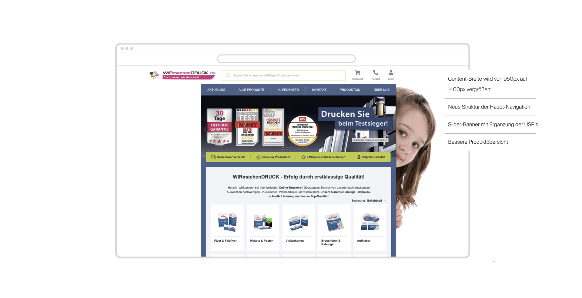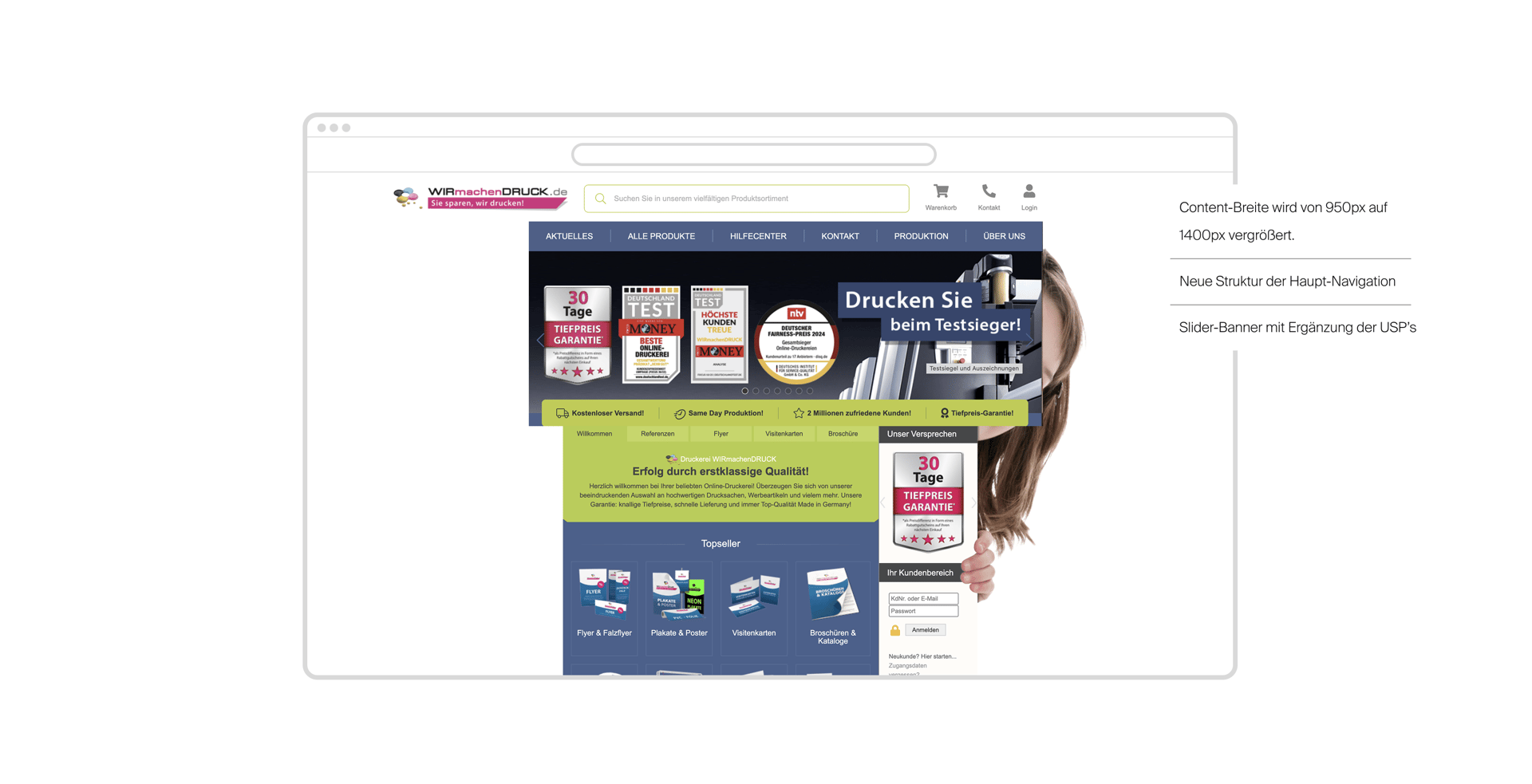 Im Zentrum dieses Projekts stand ein behutsamer Relaunch des besteh-enden Onlineshops von wirmachendruck.de – mit dem Ziel, die Usability zu optimieren, ohne dabei die gewachsenen Nutzungsmuster einer treuen Kundschaft zu stören.